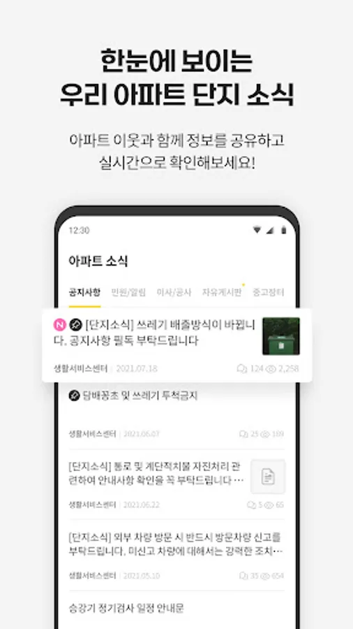 - You can quickly check the notices that could only be checked on the wall of the apartment anytime, anywhere in your hand.