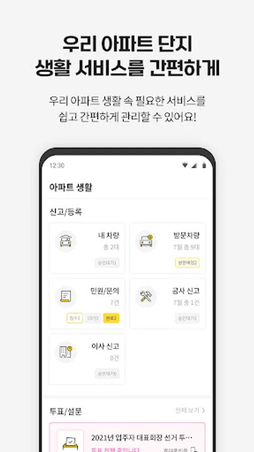 - Residents can easily participate in decision-making according to various important issues in the apartment, and enlistment and management offices can be easily operated and managed.