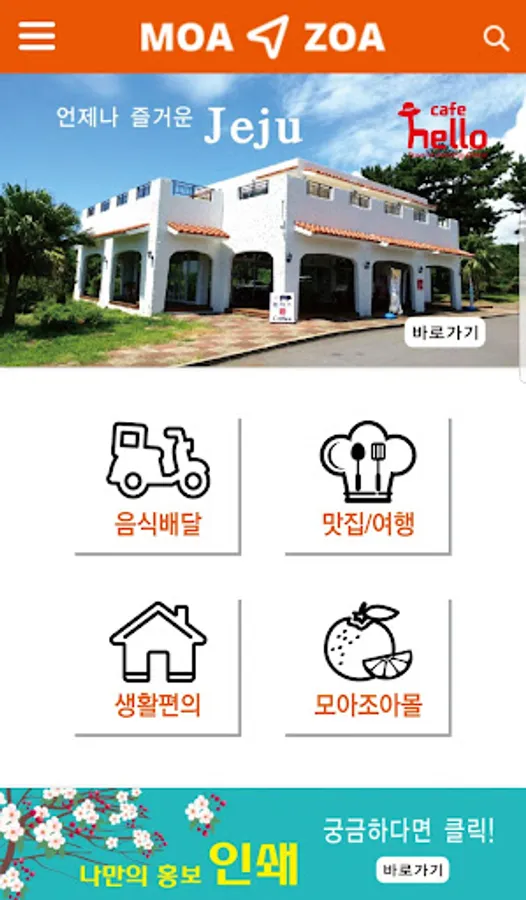 'Moa Joa' is information and delivery food order application of Jeju Island's various life stories.