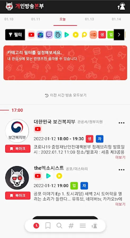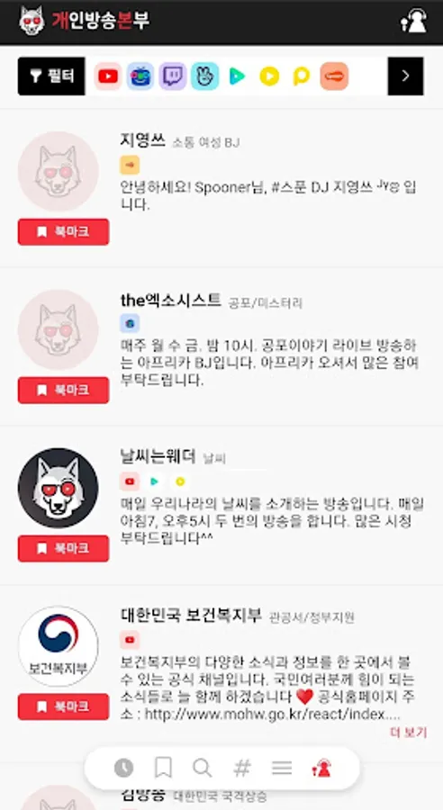 The official headquarters of all private broadcasting in Korea (ONLY ONE personal broadcasting headquarters). It is a personal broadcasting headquarters that introduces all personal broadcasting by category regardless of platform and shares schedules for each individual broadcasting. With the filtering function, you can easily search for broadcasters and broadcasters, and you can bookmark your favorite broadcasters regardless of platform to check schedules at a glance in one place. As the headquarters for personal broadcasting, we will make a service that plays a big role in further activating personal broadcasting in Korea.