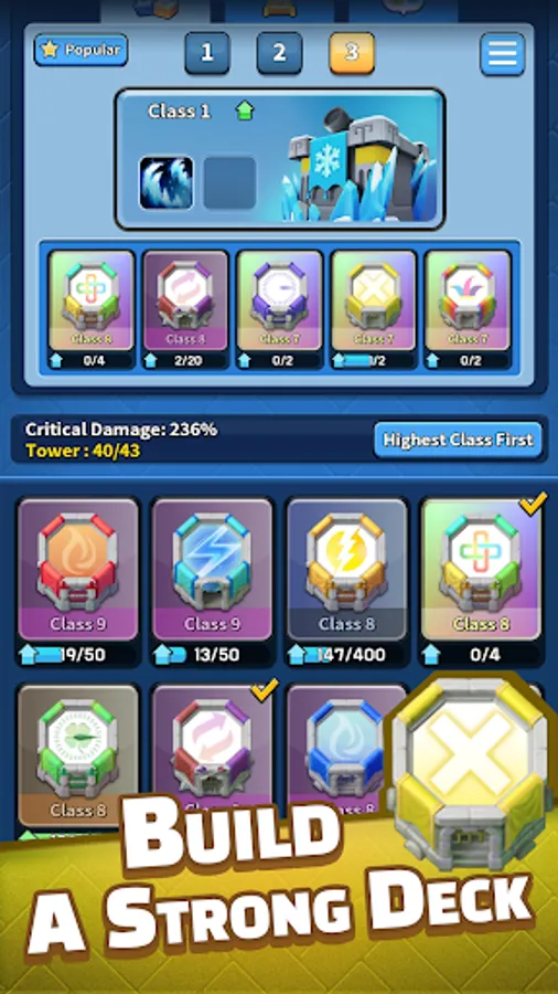 Build your strong deck of towers, blow down the rush of enemies, and earn the most trophies!