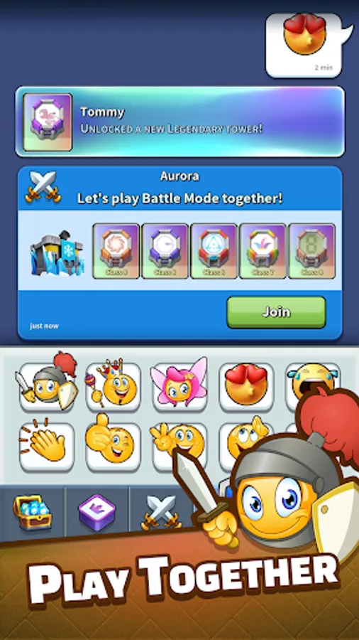 ・Co-op Mode lets you experience a co-op tower defense game. You can team up with your friend, a clan member, or a random match, and together you guard the royale road and the castle from the rush of enemy waves. Same as Battle Mode, you need to destroy as many enemies as possible, summon more towers, and complete the tower defense mission. Yet the enemies also become stronger as the rush goes on. Tower defense will get harder but stay together with your partner, stop more waves, and claim you are at the top of TD!