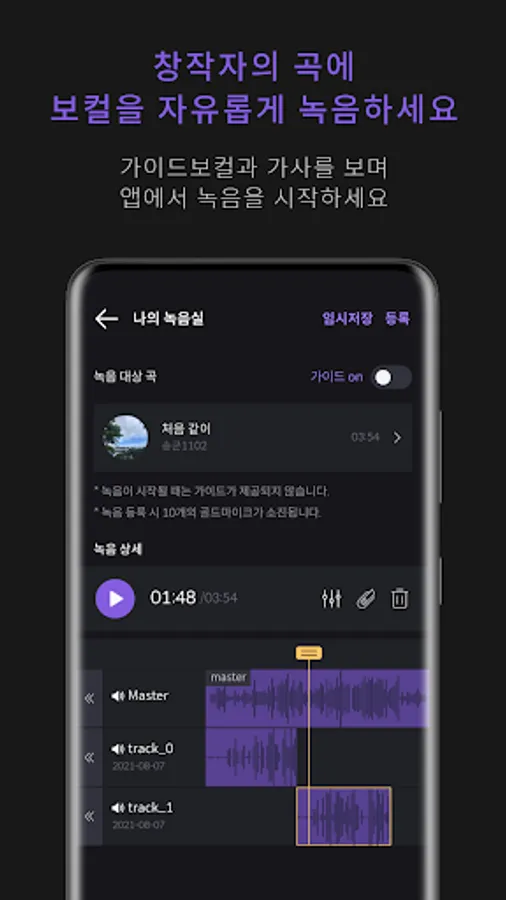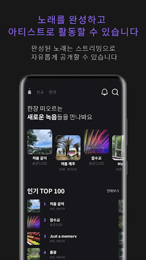 Register as a creator and publish the cool new music you've made. (MR, lyrics, guide vocal required)