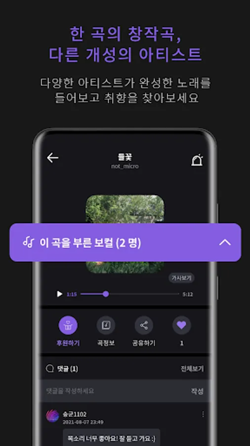 Anyone can record their own voice and become a singer in the original song released by the creator. (Please use wired earphones for smooth recording.)