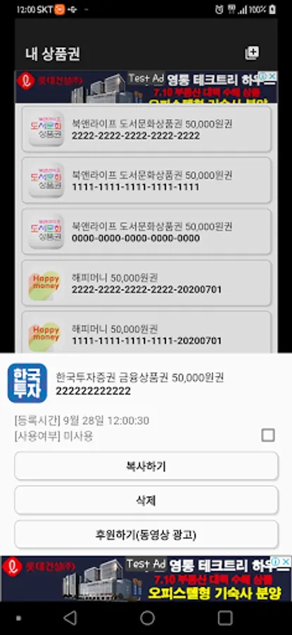 Payco gift certificates and Korea Investment & Securities financial gift certificates are registered when a deal is registered!