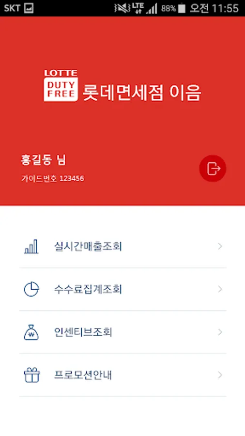당일 롯데면세점에서 발생한 매출을 실시간으로 조회할 수 있습니다.