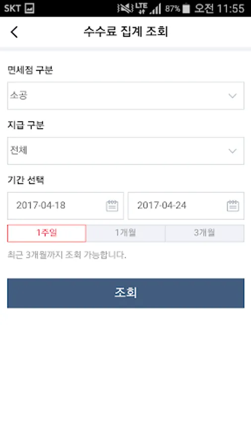 면세점 별 정산된 수수료를 확인할 수 있습니다.