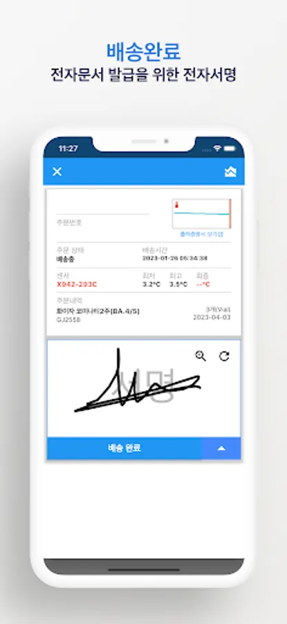 : Draw a temperature data graph from the start of delivery to the arrival of delivery and complete the delivery.