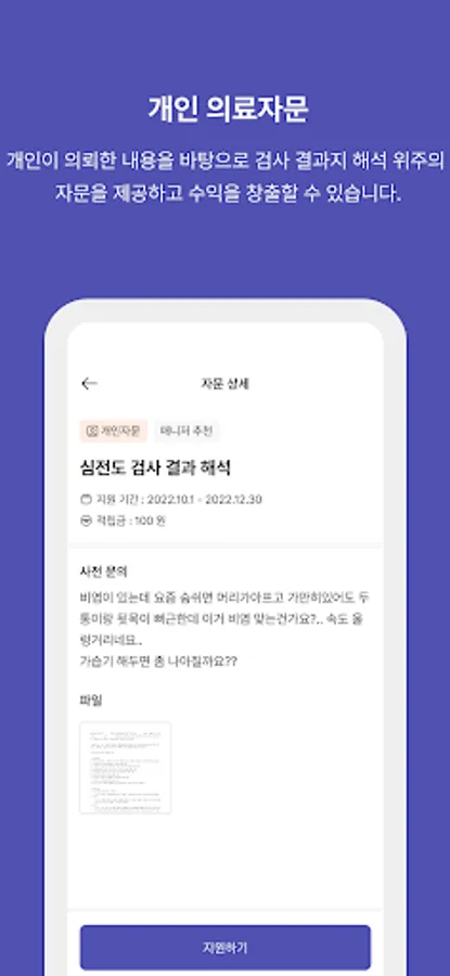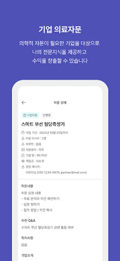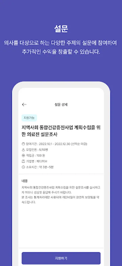 자문(개인/기업 의료자문), 설문 활동 통해 부가 수익을 창출해 보세요.