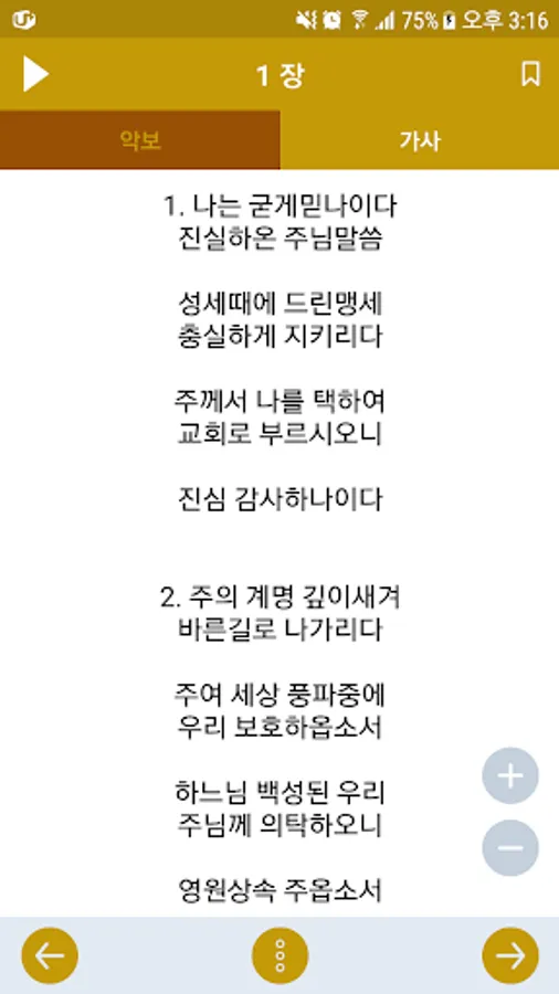 ➌ Support bookmark function to save your favorite hymns and find them immediately.