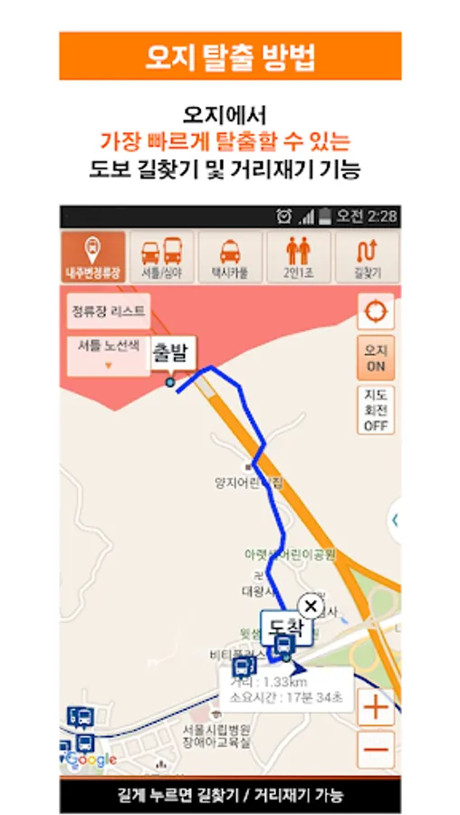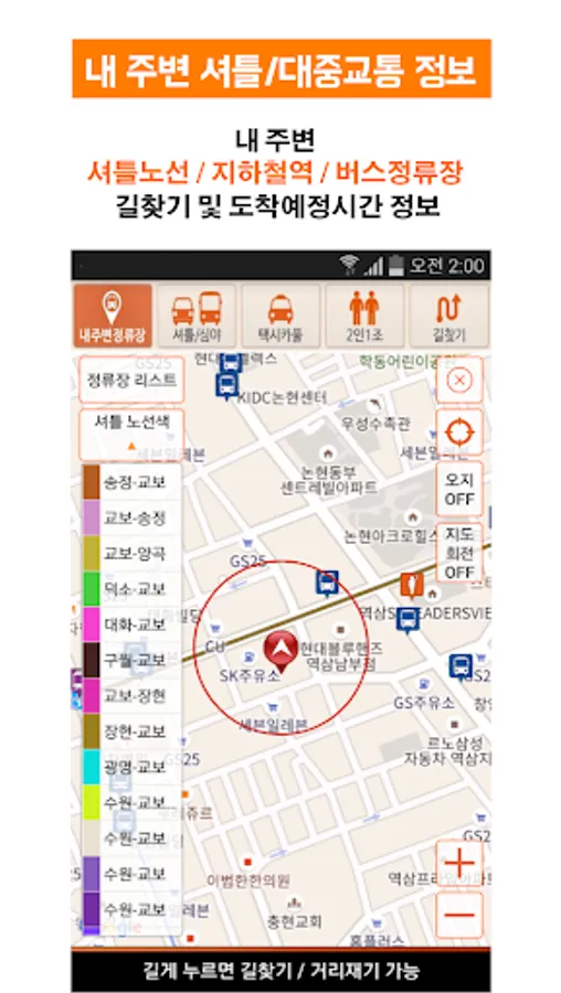 2. 대중교통 정거장 정보 및 편리한 길찾기 기능