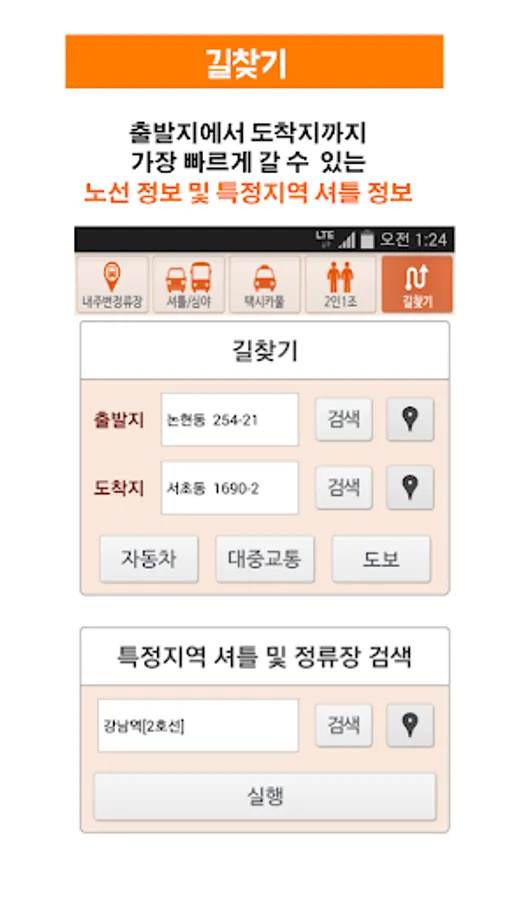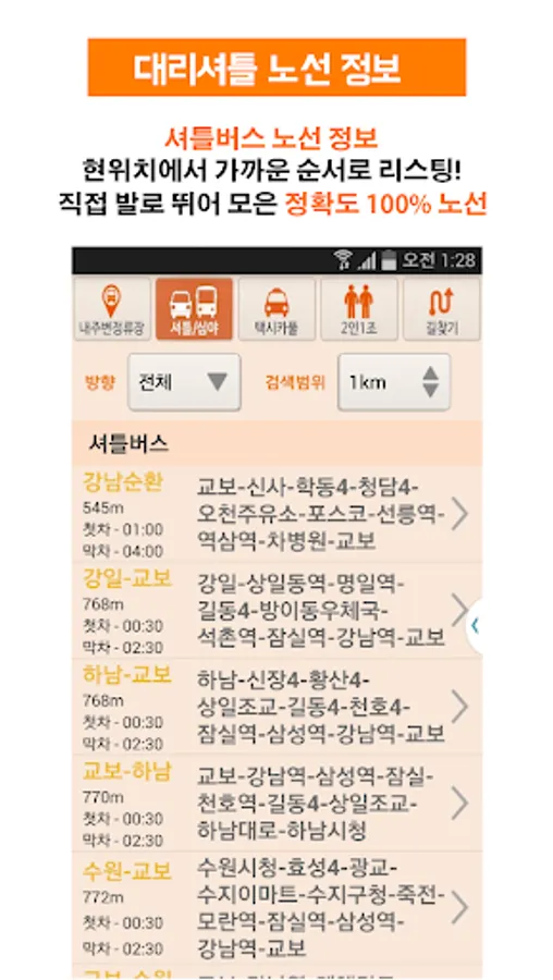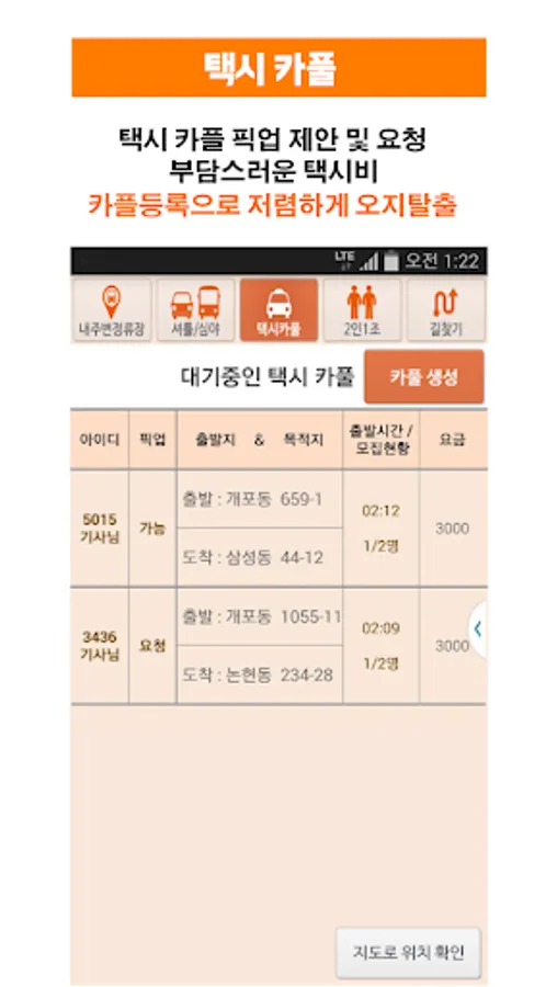 대리 셔틀 노선은 기본! 택시 카풀과 2인 1조, 길찾기 기능까지!