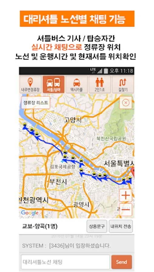 1. 대리셔틀 노선정보 및 셔틀기사님과 실시간 채팅 기능