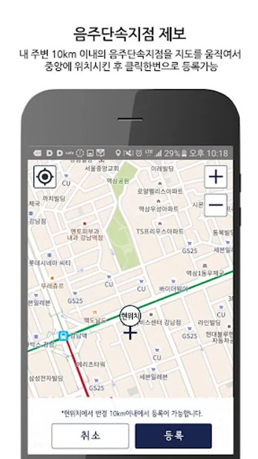 4.전국 어디든지 음주단속지점을 지도에서 확인할 수 있습니다(현재 단속지점은 물론이고 단속이 종료된 과거 음주단속지점을 요주의 음주단속지점으로 모두 표시)