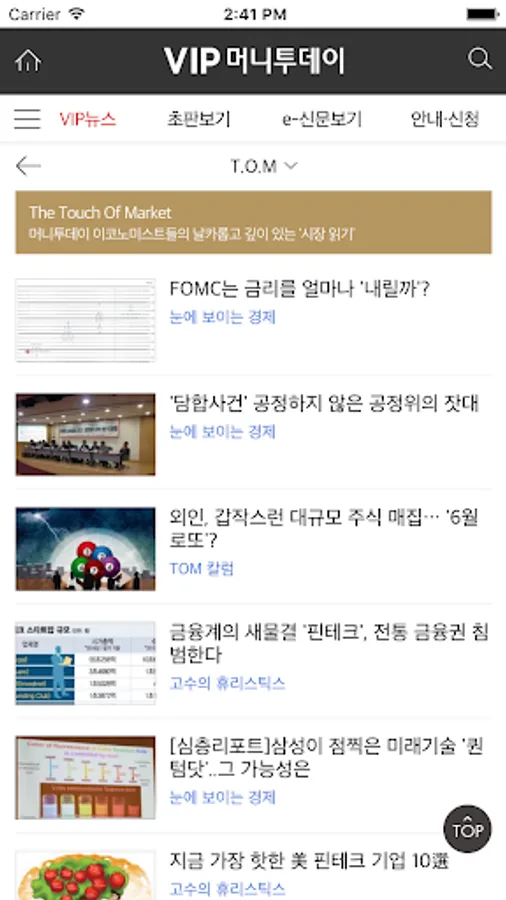 'T.O.M (The touch of the Market)' Insight delivers the full content markets, including unincorporated investment of Economic Analysis, Investment Economist stick.