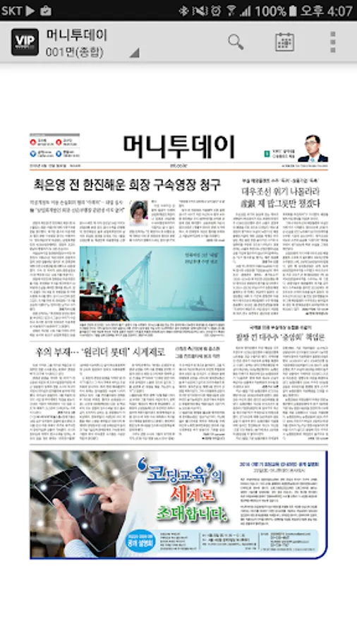 You can see the newspaper edition to be produced simultaneously with the evening newspaper the day before the date of publication deadline, you can see the floor literally forms the Money Today newspaper. Scraps, notes, and support the search function, when you type text into the form and provides a variety of convenient browsing experience available to readers.