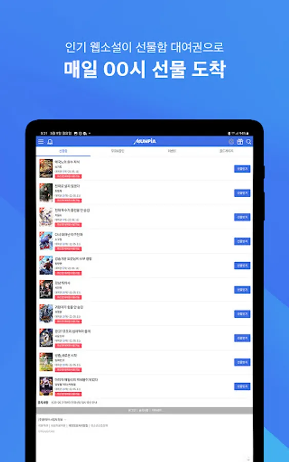Every day at 00:00, meet the popular web novels recommended by Munpia for free in the gift box.