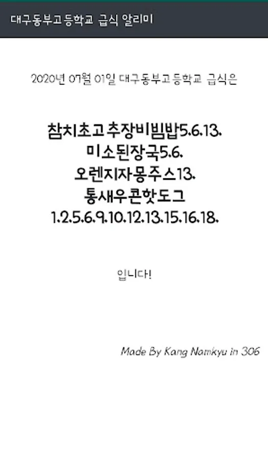 I asked you to check what your meals are every day, so it's so annoying, so I developed a website that I parse from Nice Server.