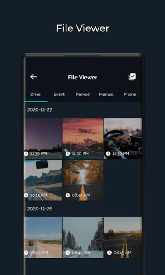 Travel-log-Drive shows vehicle’s location on map, distance, speed and event. You can check the data by date and time.
