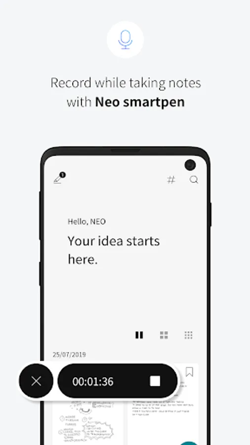 [Record / Replay] Record while taking notes with Neo smartpen. Never miss a word from lectures or seminars anymore. You don’t have to go through all your recordings. Just tap your writing in the application to play the audio recorded at that moment.