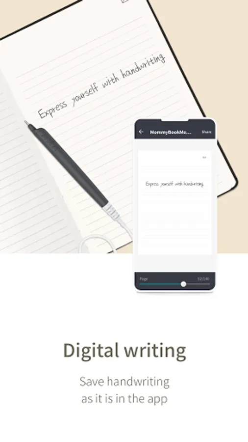 Anyone can easily store and use handwriting digitally by connecting a [Neo smartpen x Mommy book] pen to a smartphone with a cable.