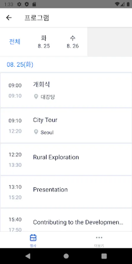 - 행사 프로그램, 연사정보 등 행사 상세내용 확인