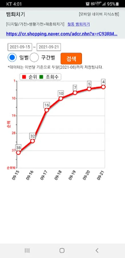 In the case of Coupang shopping mall, if you register in this app by matching "product name" and "product URL", the product ranking in the search results is checked and an alarm is sent to the app.