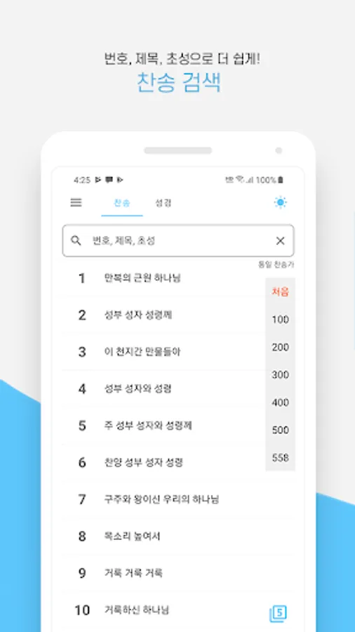 -New hymn, unified hymn, and baptismal hymn can be selected and viewed.