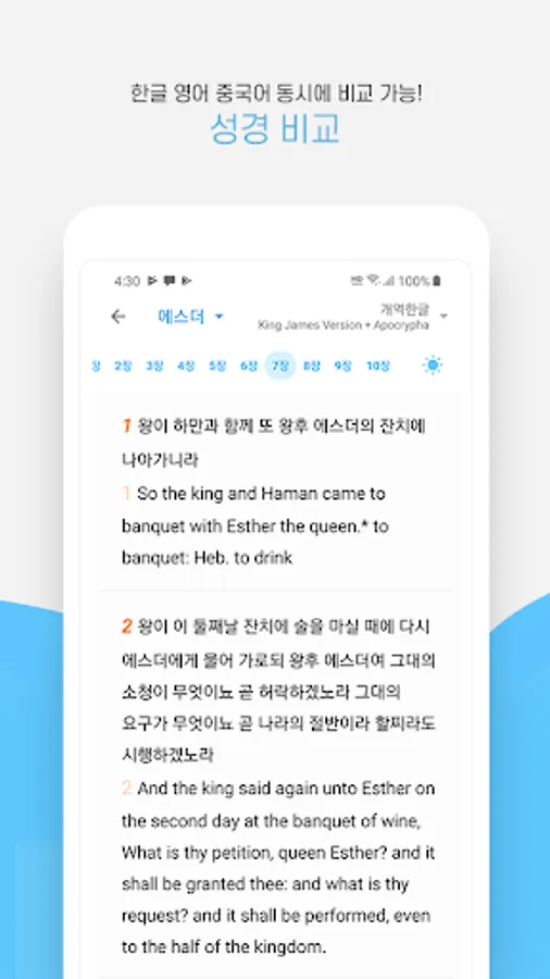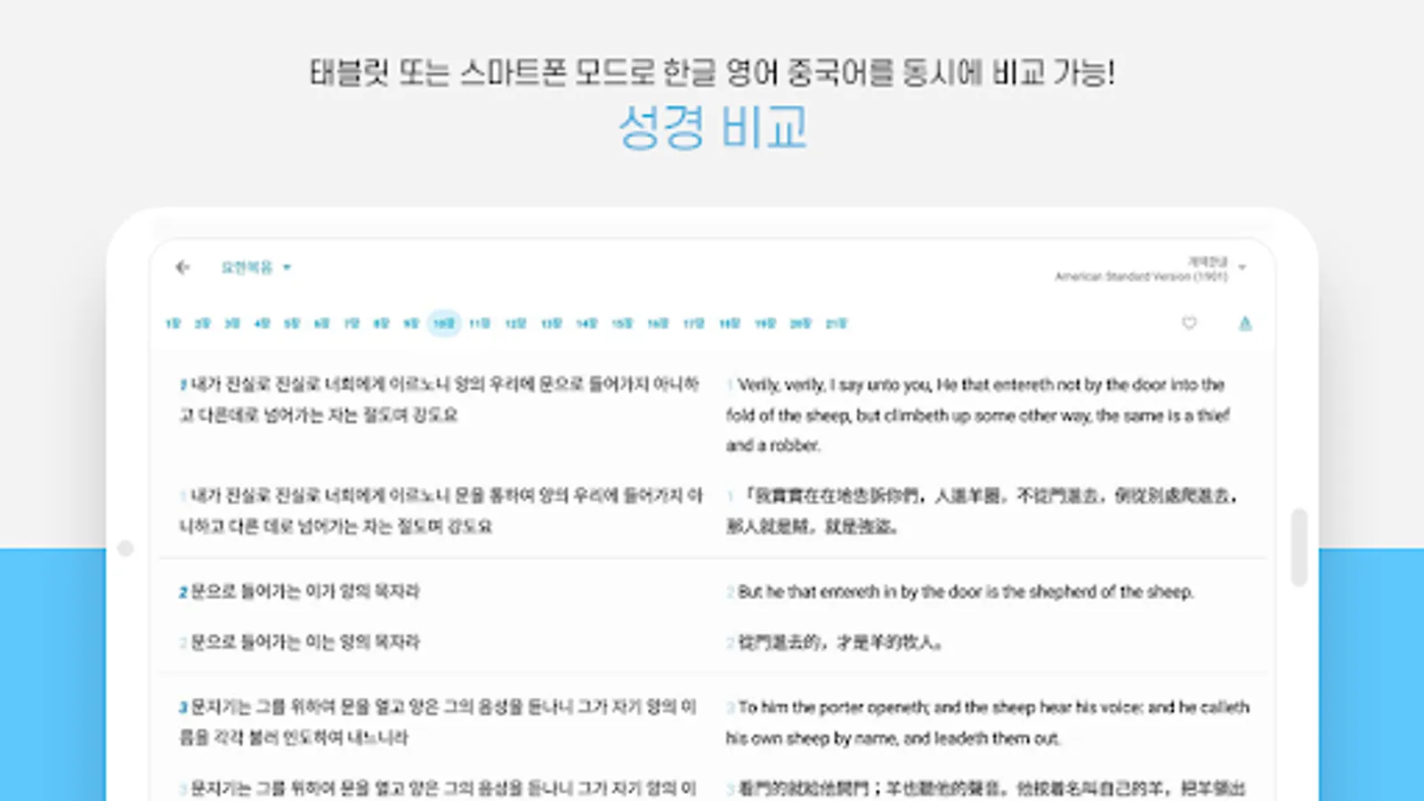 -You can compare and view multilingual Bibles such as Korean, English, Chinese, German, and Spanish.
