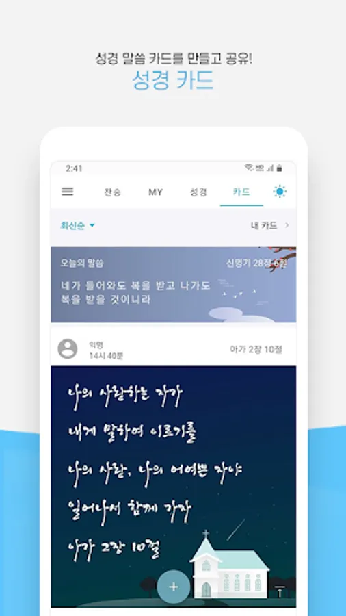 The OBIBLE app is a Bible application that allows you to easily and conveniently share God's words and hymns in your life, without being limited by space, and to be with you every day.