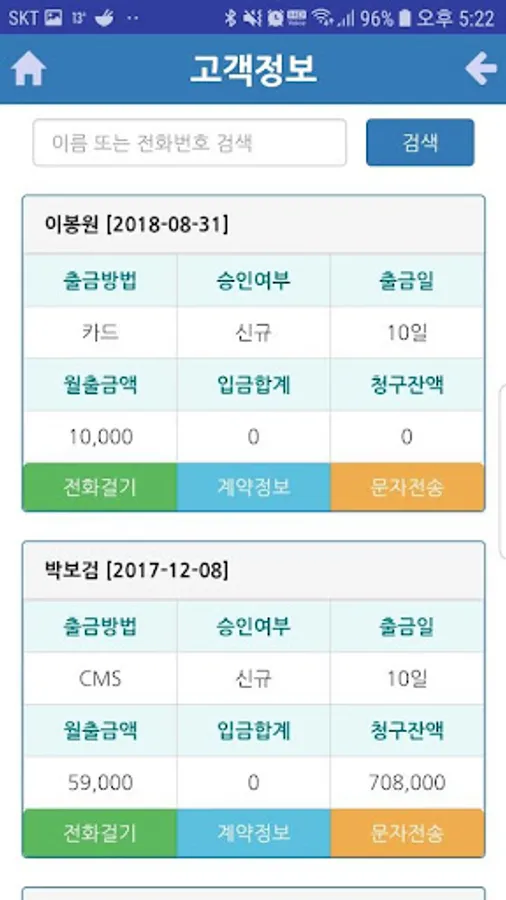 입금내역, 상담현황, 승인상태,청구현황등을 쉽고 편리하게 확인하고, 데이터 손실