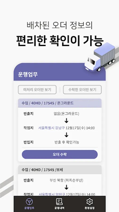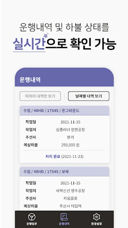 You can check the transportation history and expected/confirmed payment by period at a glance.
