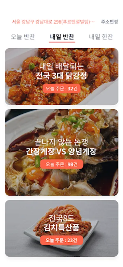 You can receive side dishes from local side dish shops, meat and fish shops around you before dinner, and national delicacies by courier in two days. You can easily prepare home-cooked meals with delicious side dishes. Enter your address, select a nearby side dish shop, and order side dishes.