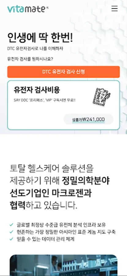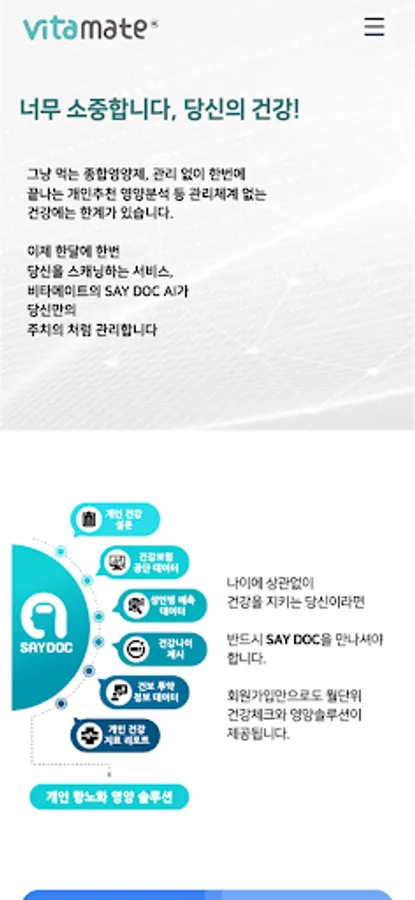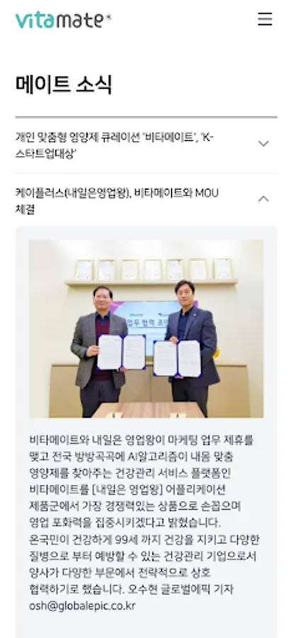 Vitamate's 'personalized nutritional supplement service' is a service that analyzes health information with an AI (artificial intelligence) algorithm to recommend 'customized nutritional supplements' and deliver them regularly.
