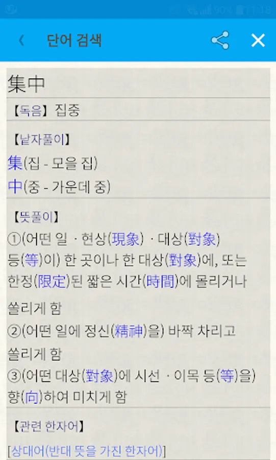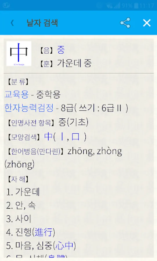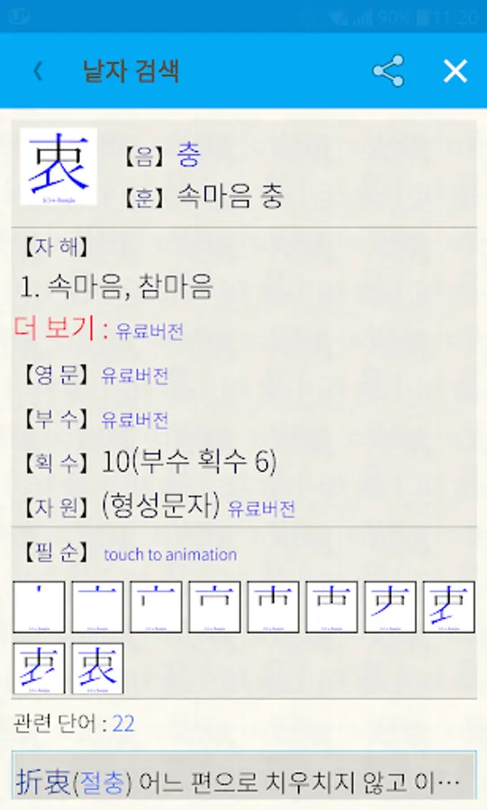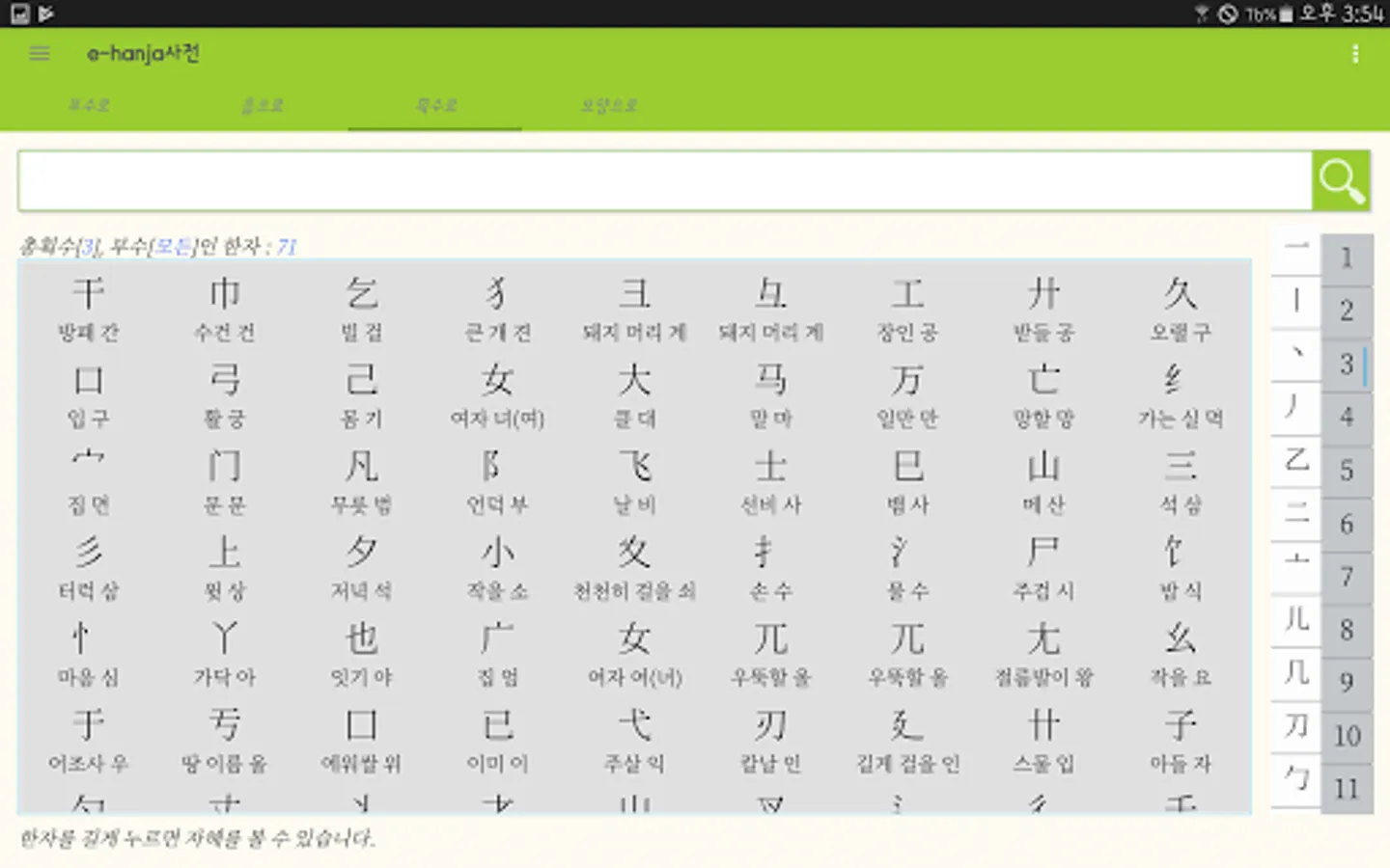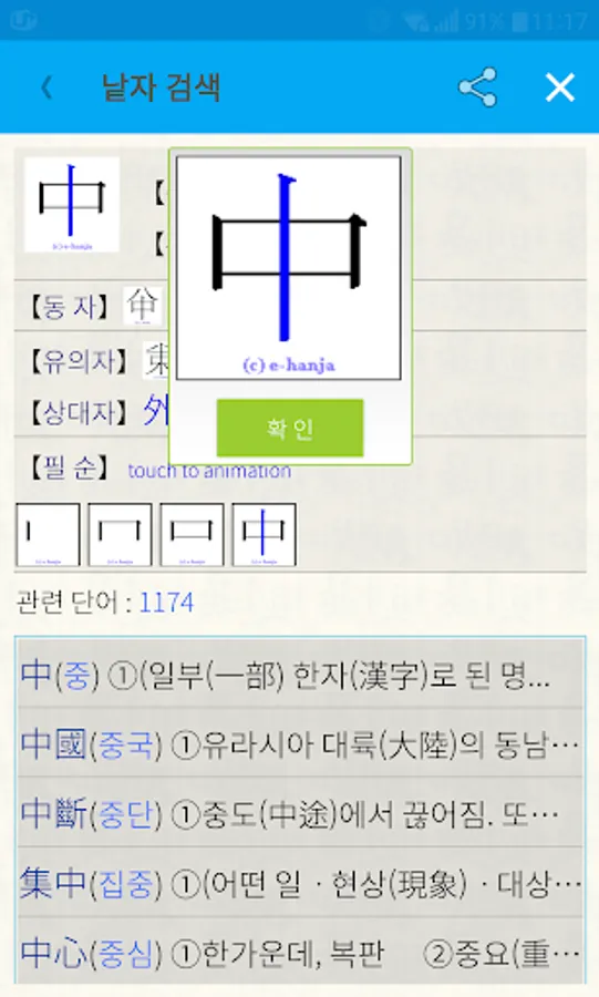 [Digital Chinese Dictionary e-Hanja]. A Chinese character dictionary that includes Chinese characters for education, Chinese characters for the life of the Supreme Court, and Chinese characters for the Chinese character proficiency test. The content currently provided on Naver [Chinese Dictionary] is provided as it is. Title 8,913 characters. Over 74,000 used words. Additional information of various other Chinese characters is abundantly provided. Learn Chinese characters and broaden your understanding of various Chinese characters in everyday life. The stroke order of all titles is presented in a clear manner using animation techniques.