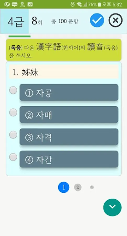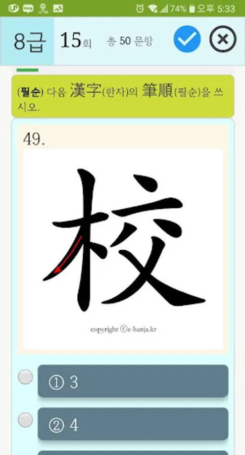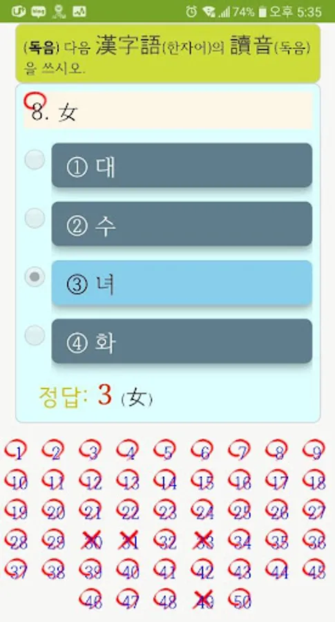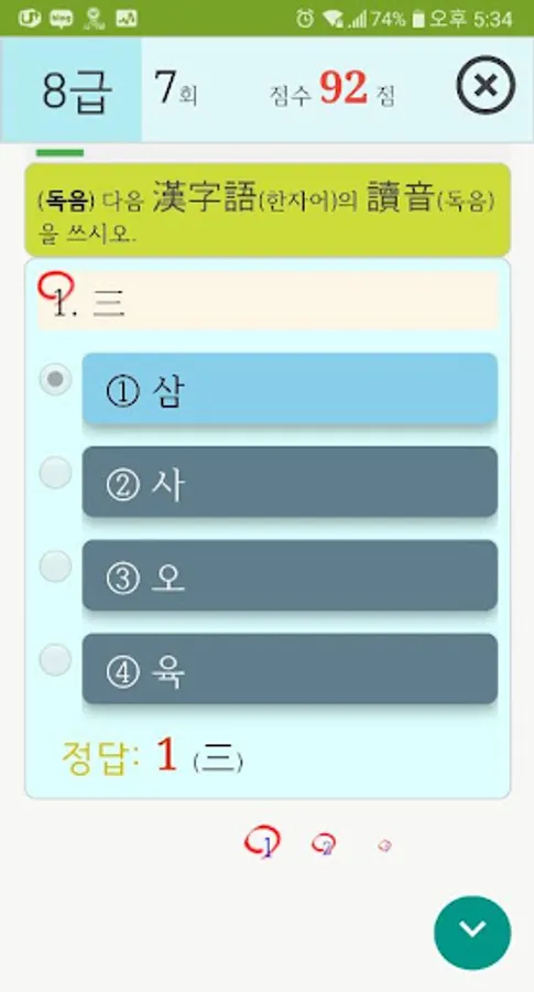 4. On the correct answer screen [e-hanja digital kanji dictionary app] in conjunction with, provides a detailed kanji explanation and word solving.