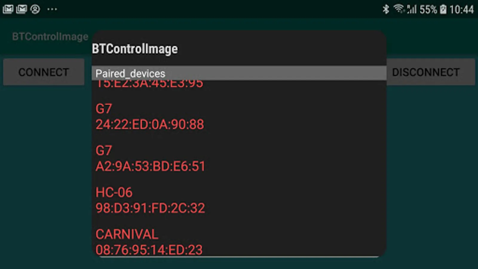 An application that controls the RC car by transmitting commands by using Bluetooth communication