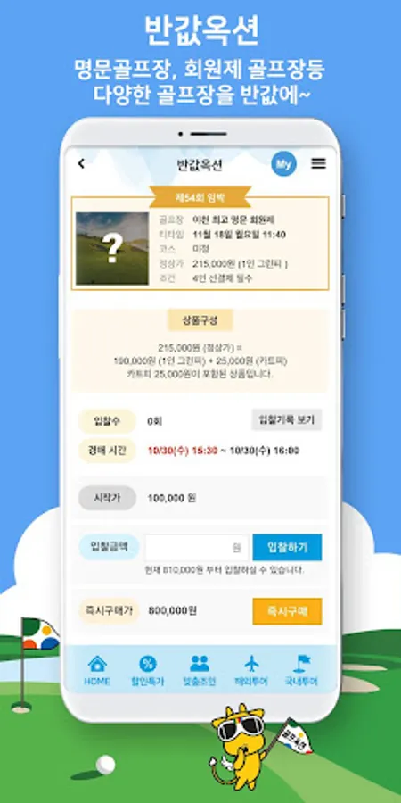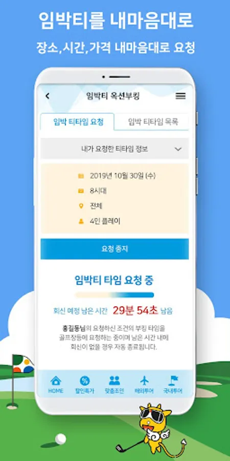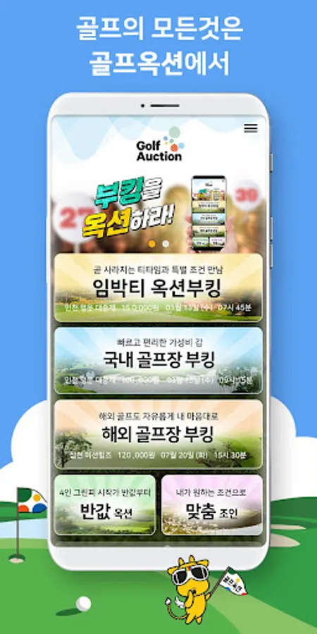 : 임박티를 찾아 헤매이지 말고 원하는 시간, 장소를 입력하시고 내마음에 드는 그린피를 골라가는 내마음대로 임박티옥션 부킹 !!!
