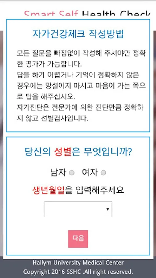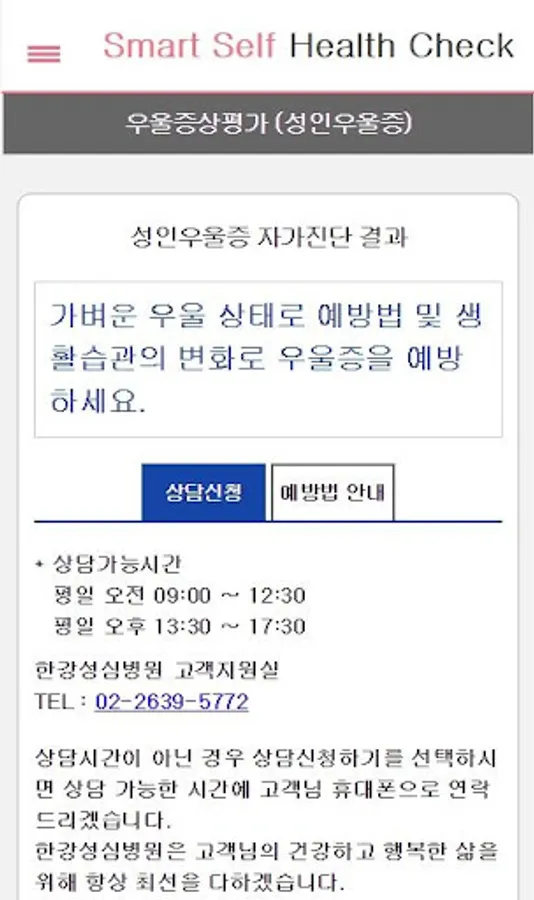 : Self-health check provided to customers using the customer guide app at Hallym University Medical Center