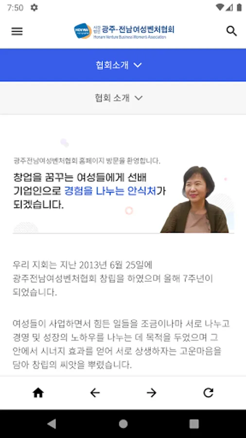 광주전남 여성벤처협회 온라인 제품박람회 및 여성벤쳐협회와 소속기업의 홍보를 위한 서비스입니다.