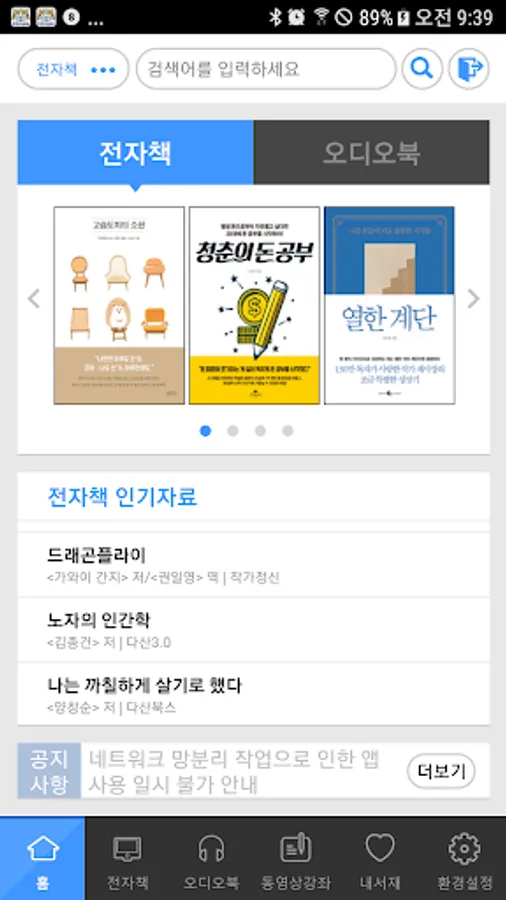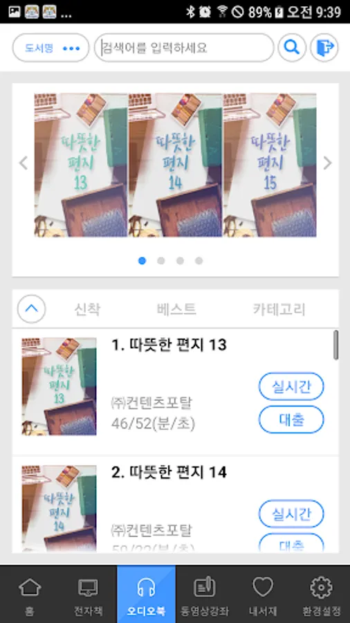 You can search for audiobooks through the audiobook service and use the service through smart devices anytime, anywhere through real-time and loan.