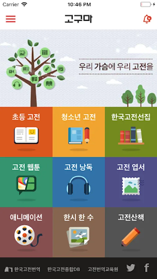 우리 고전 대중화를 위하여 교육부 산하 연구기관인 한국고전번역원에서 제작한 우리 고전 정보 앱입니다.