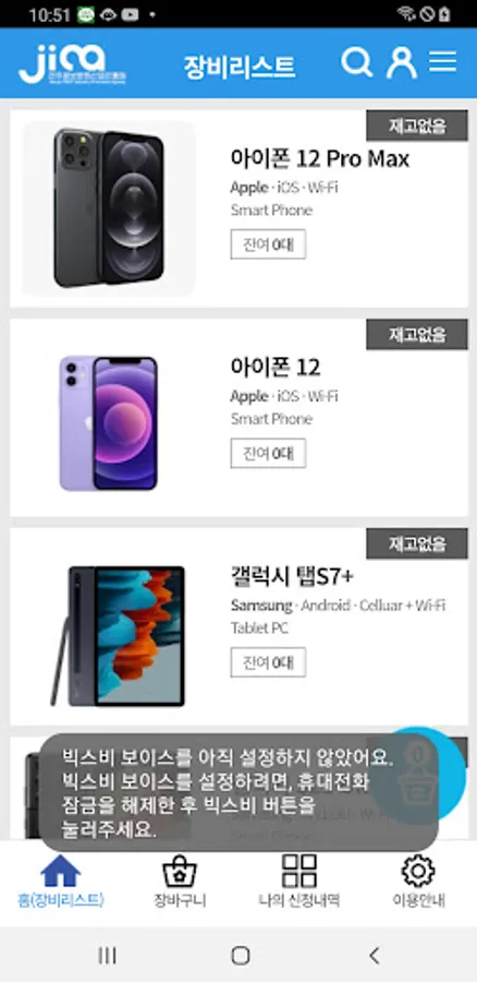 Select a mobile test device operated by Jeonju Information Culture Industry Promotion Agency