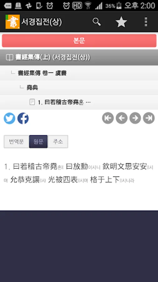 - 전통문화연구회 보급하고 있는 동양고전 앱 시리즈 중 하나인 서경집전書經集傳(상) 입니다.