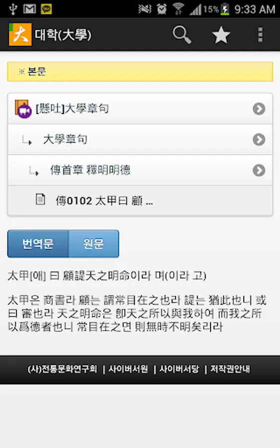 전통문화연구회 동양고전 앱 시리즈 - 대학(大學)