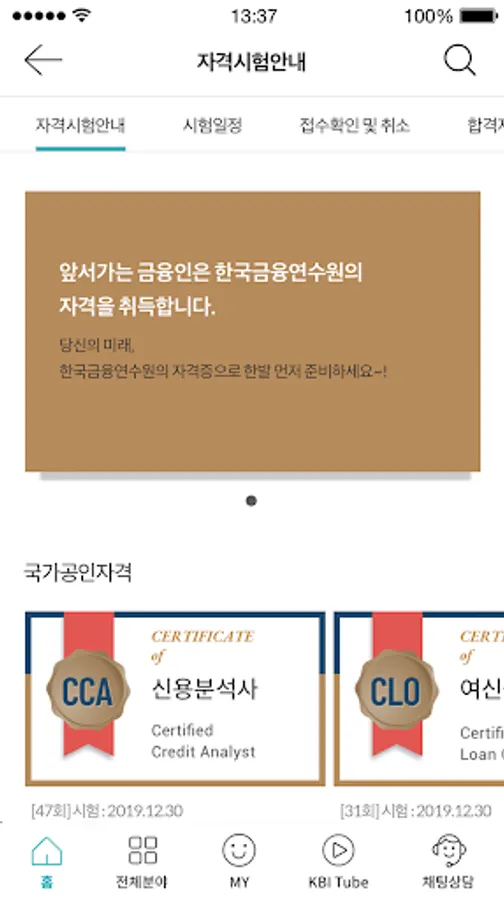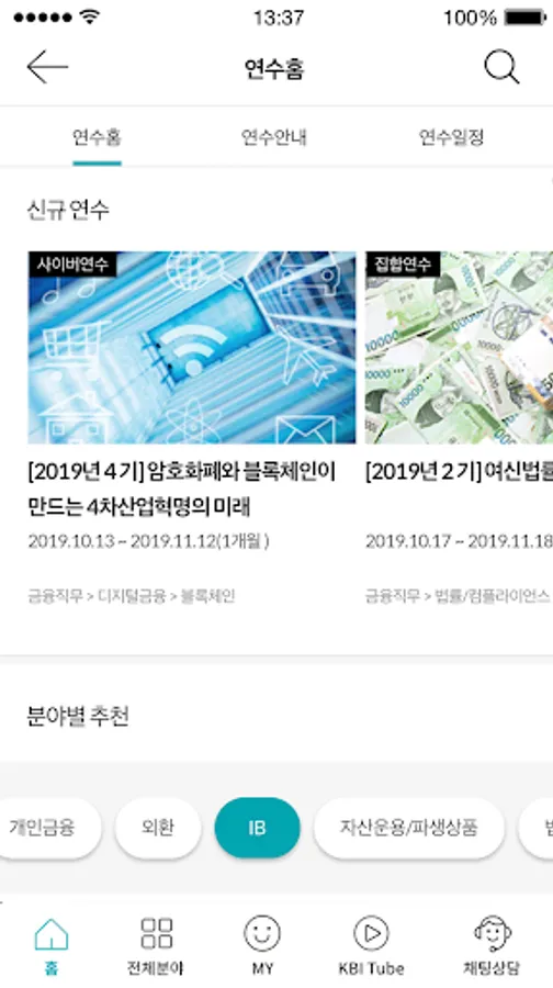 ∙ 집합연수, 통신연수, 사이버연수, KBItube, 자격시험, 금융총서를 모바일에서 신청하시고 학습하세요