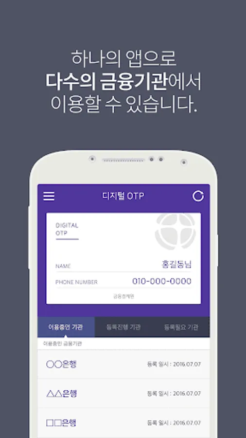 o To use the service, download the app and then visit the branch of a financial institution of your choice and receive a digital OTP (smart security card) [registration].