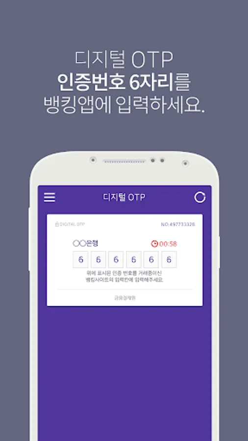 5. Install and run the Digital OTP (Smart Security Card) app and enter the app registration code to complete issuance.