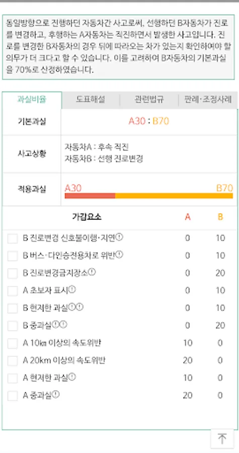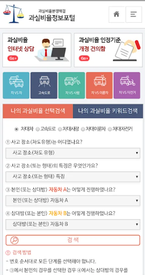 Type of accident (choose the right side of the road or the underpass person) → Enter key words, keywords, search words, etc. that represent the chart → Check charts and basic errors according to your accident