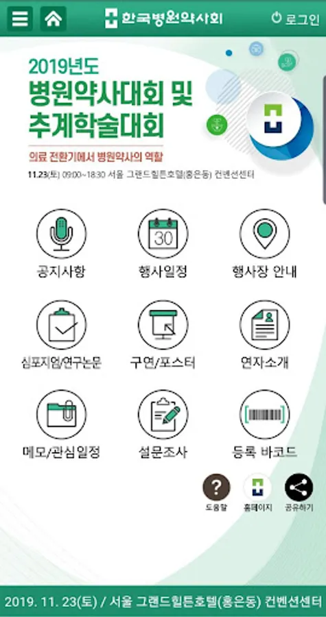 2019 한국병원약사회 추계학술대회 모바일앱 이용 안내